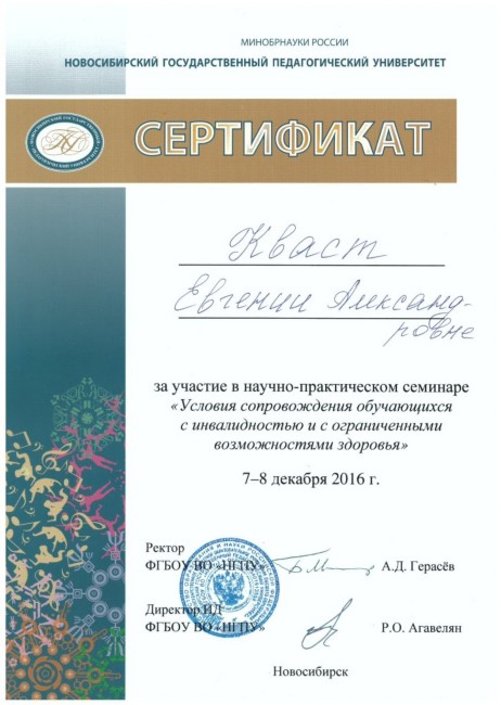 - 7 - 8 декабря 2016 года педагоги МАОУ КШИ №12 приняли участие в научно-практическом семинаре "Условия сопровождения обучающихся с инвалидностью и с ограниченными возможностями здоровья", проводимом ФГБОУ ВО НГПУ, в рамках работы инновационной площадки. Педагоги школы провели для участников семинара открытие занятия, мастер-классы, внеклассные мероприятия.
